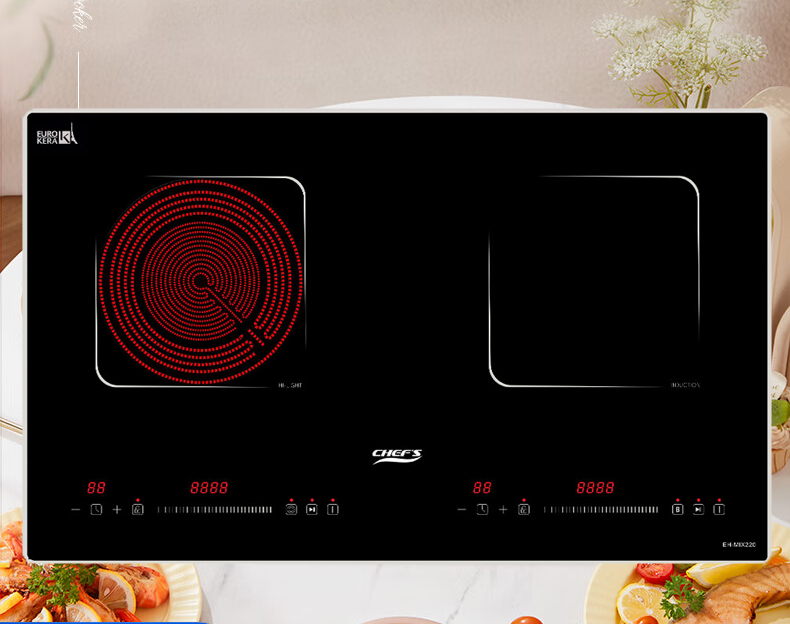 Bếp điện từ Chefs EH MIX220 mang trên mình kiểu dáng thanh lịch với gam màu đen thời thượng, điểm lên các chi tiết màu trắng nhẹ nhàng cùng vòng nhiệt dạng hình vuông cách tân tạo sự khác biệt, góp phần nâng cao tính thẩm mỹ cho không gian bếp. Sản phẩm là sự lựa chọn phù hợp cho mọi gia đình, khi được tích hợp 2 vùng nấu, 1 vùng nấu từ đun nấu nhanh, 1 vùng nấu hồng ngoài (2 vòng nhiệt) có thế nấu được mọi loại xoong, nồi.