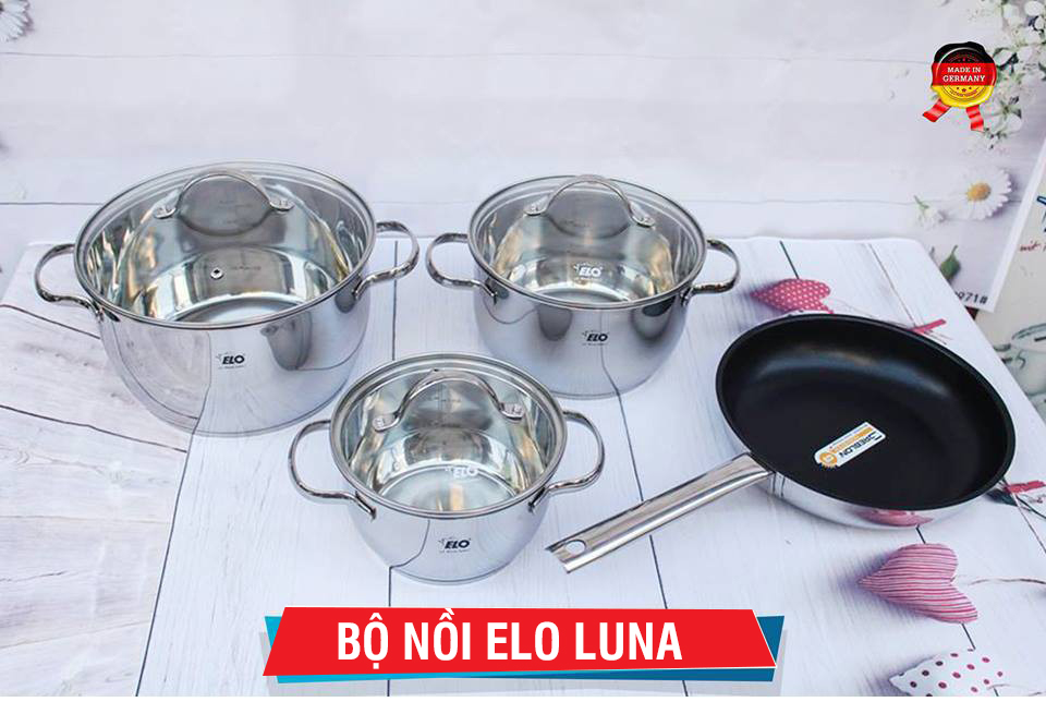 Bộ nồi 4 chiếc ELO luna được làm từ inox 304, phần đáy 3 lớp.