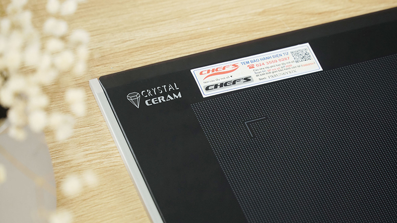 Ở thời điểm hiện tại mẫu bếp từ Chefs EH DIH860 sử dụng mặt kính Crystal Ceram cao cấp (tinh thể pha lê) để thay thế cho mặt kính Schott ở thế hệ tiền nhiệm. Loại mặt kính pha lê này có khả năng chịu lực và chịu nhiệt không hề thua kém mặt kính Schott của Đức nhưng lại có giá thành tốt hơn (chịu lực 10kg, chịu nhiệt đến 800 độ C). Bề mặt kính phẳng, mịn, dễ dàng vệ sinh, chùi rửa, kính màu đen sang trọng phủ sơn nano cách điệu vùng nấu vừa tăng khả năng chống xước, vừa tạo sự khác biệt cho bếp. Hơn nữa mặt kính được bo viền nhôm 2 cạnh bên bảo vệ bếp trước những va đập gây nứt vỡ mặt kính.