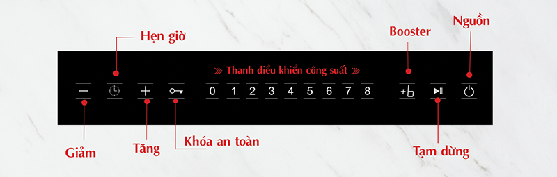 Khi đang đun nấu có phát sinh các việc bận như nghe điện thoại, đón khách,..Người dùng có thể bấm Tạm dừng bếp để xử lý, bếp sẽ được ngưng hoạt động tạm thời, sau đó sẽ tắt sau 1 phút nếu như không được bấm để khôi phục lại hoạt động.