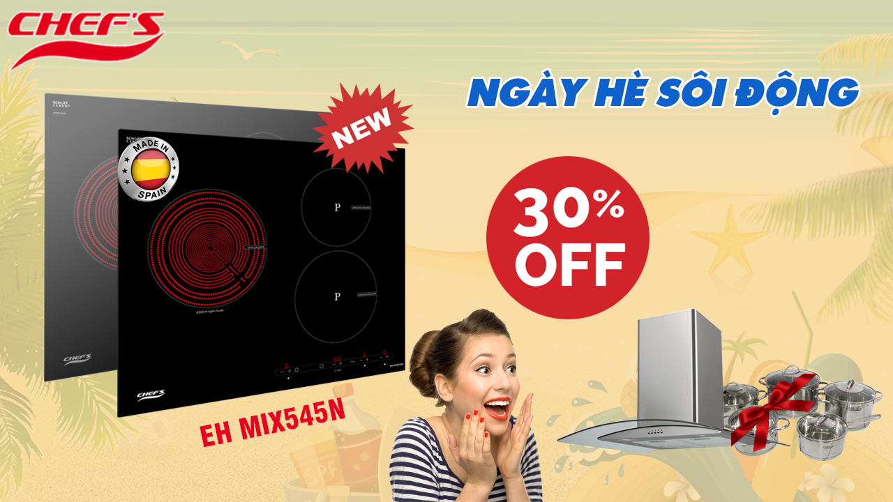 Cùng với việc công bố chương trình khuyến mãi "NGÀY HÈ SÔI ĐỘNG" thì hãng Chefs đã giới thiệu tới người tiêu dùng tại Việt Nam model bếp điện từ mới nhất EH MIX545N, được lắp ráp và nhập khẩu trực tiếp từ Tây Ban Nha và đây sẽ hứa hẹn sẽ là mẫu bếp hỗn được săn đón rất nhiều trong thời gian sắp tới. Vây chiếc bếp này có gì để chinh phục các khách hàng, hãy cùng beptuchefs.net tìm hiểu ngay dưới đây nhé.