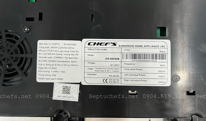 Bộ sản phẩm cùng giá bếp từ chefs EH DIH32B