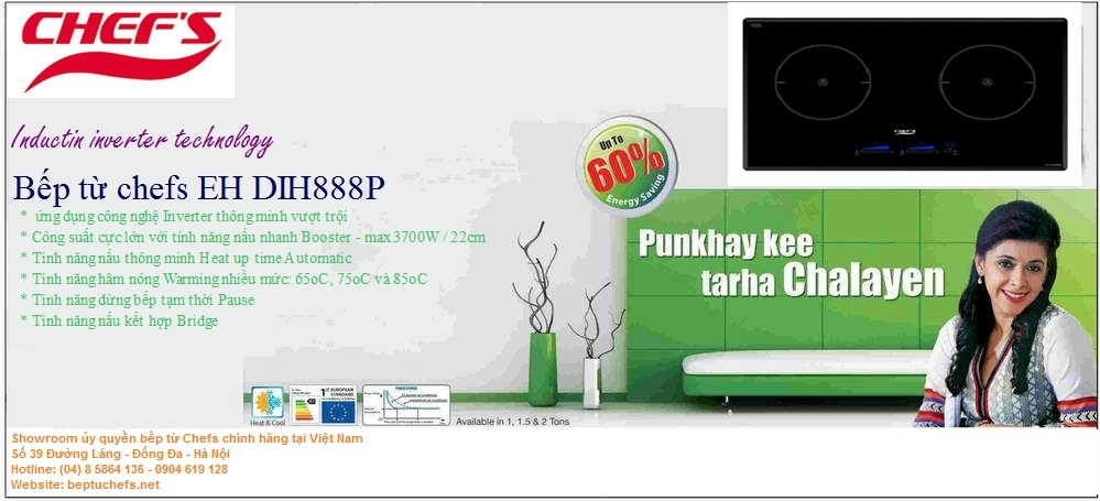 Bước đột phá của bếp từ chefs eh dih888p đó là công nghệ INVERTER mà hãng chefs đã cực kỳ thành công với những "người tiền nhiệm" như dih888, dih890, công nghệ này nhằm cải tiến và nâng cao hiệu suất làm việc của bếp bằng cách điều chỉnh dòng điện với tần số cố định thành dòng điện có tần số có thể điều chỉnh được, điều này có thể thấy rõ khi bếp từ chefs eh dih888p có thể hoạt động ở những mức công suất rất thấp khoảng 60w và cực cao lên đến 4000w mà không bị bất kể hiện tượng nhát gừng hay không ổn định. Ngoài ra công nghệ này góp phần đáng kể vào việc tối ưu năng lượng mà bếp sử dụng khi kết hợp với công nghệ cảm ứng từ làm cho khả năng tiết kiệm điện năng của bếp trở nên vượt trội hơn so với các loại bếp từ thông thường khác.