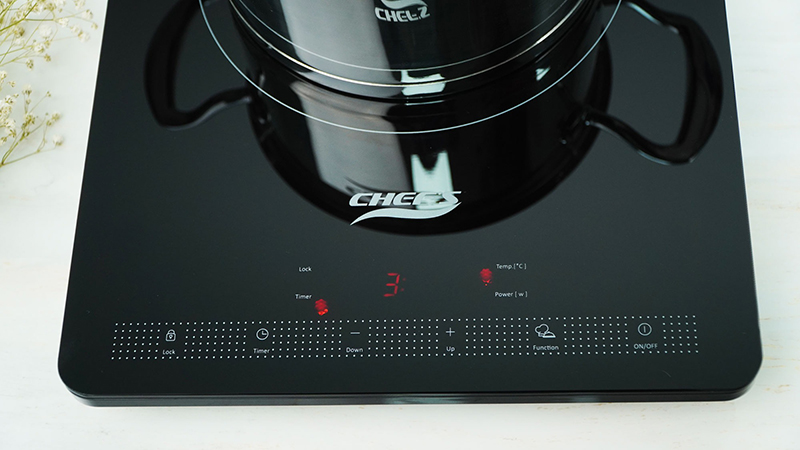 Nhấn vào phím khóa 3s để kích hoạt tính năng khóa. Lúc này, các phím trên bếp sẽ bị vô hiệu hóa (chỉ mở nút nguồn và Khóa). Tính năng rất an toàn đặc biệt là với các gia đình có trẻ nhỏ.