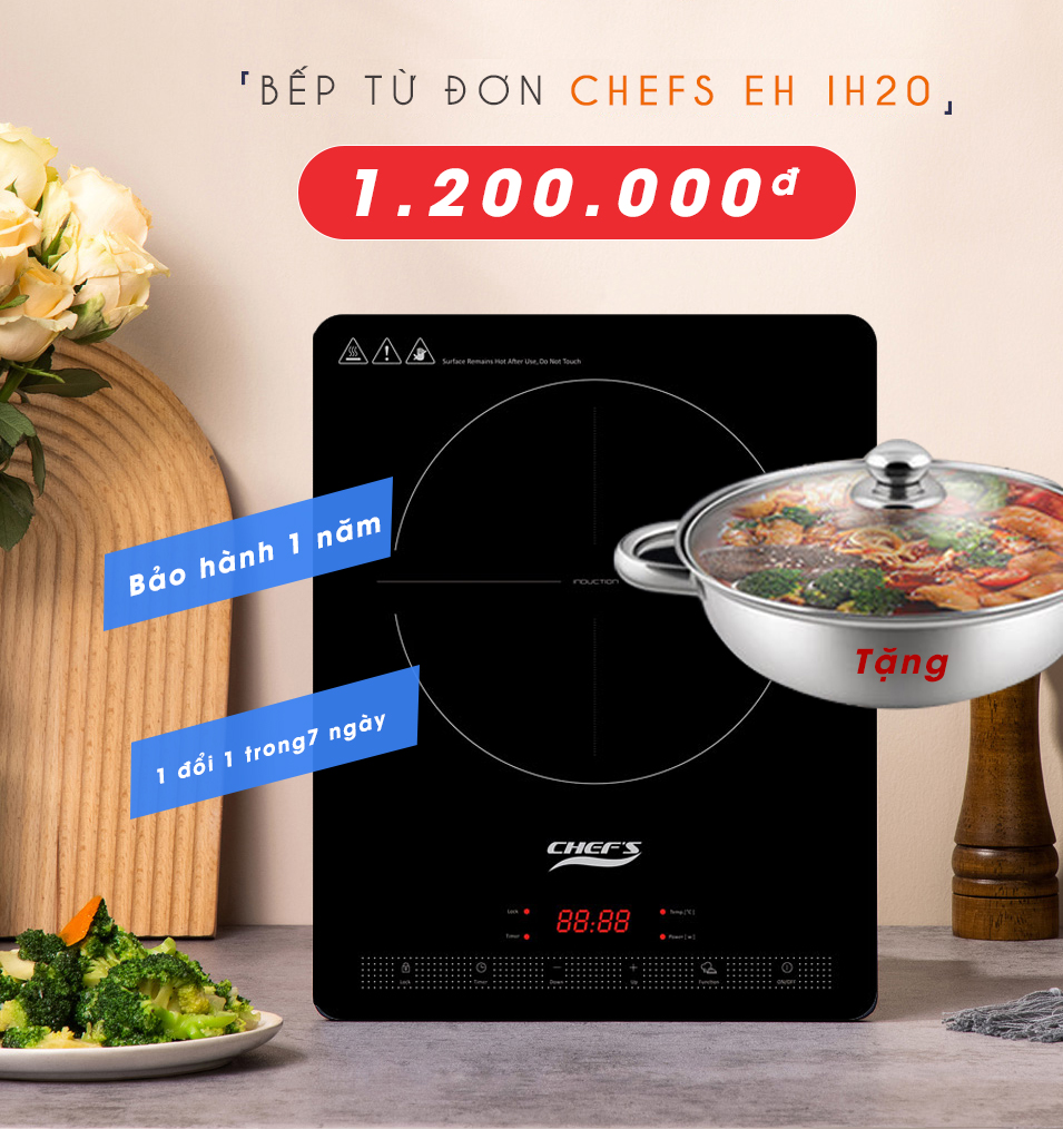 Mẫu bếp từ đơn Chefs EH IH20 đang có mức giá 1.2 triệu đồng và được tặng kèm theo 1 nồi đun nẩu tiện dụng. Ngoài ra bếp còn nhận đưuọc chế độ bảo hành 12 tháng, bảo hành 1 đổi 1 trong 7 ngày.