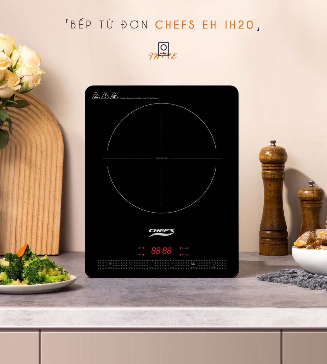 Bếp từ đơn Chefs EH IH20 sở hữu thiết kế mỏng gọn, đẹp mắt