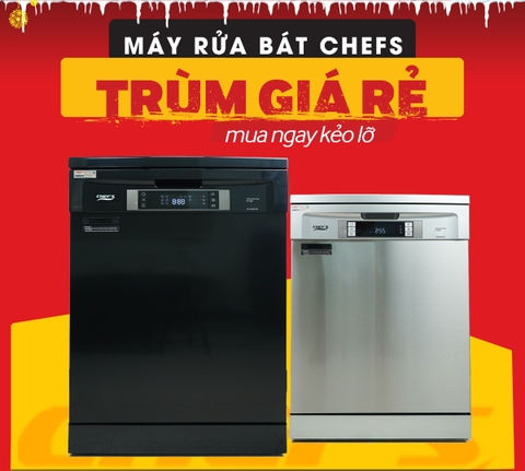 Những chiếc máy rửa bát Chefs đã dần trở nên quen mặt với các gia đình tại Việt Nam. Và đây cũng đang là một thiết rất cần thiết trong mỗi gia đình hiện đại, hỗ trợ các chị em công việc rửa bát hàng ngày, tiết kiệm thời gian hơn. Mời bạn cùng xem qua 2 mẫu máy rửa bát Chefs tốt nhất, có giá rẻ đáng mua nhất hiện tại beptuchefs.net. 1. Máy rửa bát Chefs EH DW401EB Loại máy: Máy rửa bất độc lập Công suất rửa: 15 bộ Chương trình rửa 6 chương trình rửa tự động: Auto, Intensive, Normal, ECO, Rapid, Prewash Tiện ích: Sấy...