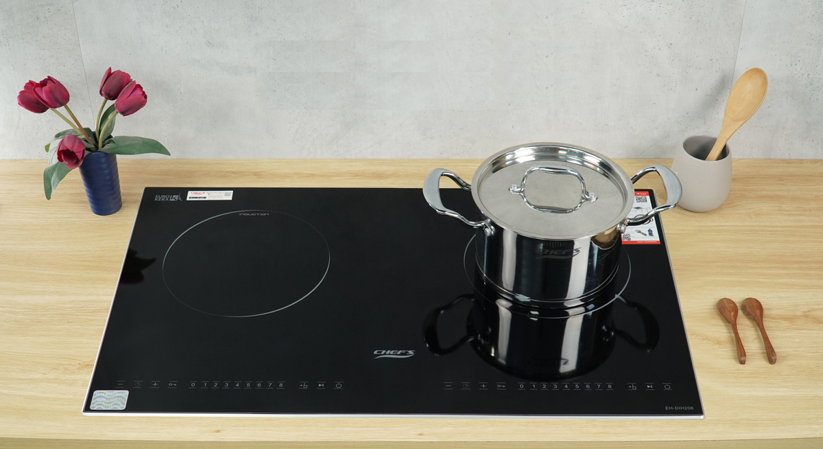 Tiếp nối sự thành công của những mẫu bếp từ lắp ráp Việt Nam, hãng Chefs tiếp tục cho ra mắt mẫu sản phẩm bếp từ Chefs EH DIH206 với nhiều cải tiến và nâng cấp rất đáng tiền so với các sản phẩm tiềm nhiệm trước đó như DIH2000A, DIH321... Bếp được trang bị mặt kính EuroKera (thương hiệu mặt kính của Pháp), có bo viền nhôm 4 cạnh bên bảo vệ mặt kính trước những va chạm, vừa an toàn, vừa tăng độ thẩm mỹ tối đa cho bếp.