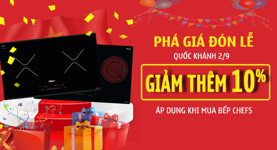 Chào mừng quốc khánh Việt Nam, từ 25/08 đến10/09/2018 Showroom ủy quyền chính hãng BEPTUCHEFS.NET triển khai chương trình "PHÁ GIÁ ĐÓN LỄ" khi mua các sản phẩm bếp từ Chefs và bếp điện từ Chefs.
