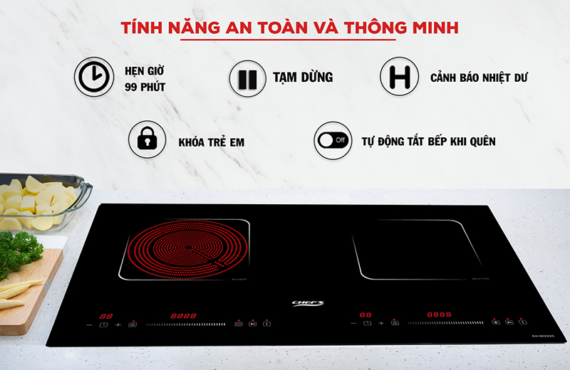 Bên cạnh đó bếp điện từ Chefs EH MIX220 còn sở hữu nhiều tính năng thông minh khác như: