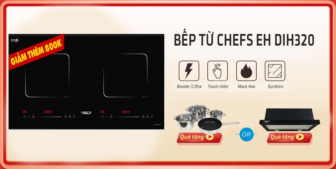 Xem thêm: Mua bếp Chefs DIH320 tặng kèm bộ nồi trị giá 1.7 triệu siêu đẹp