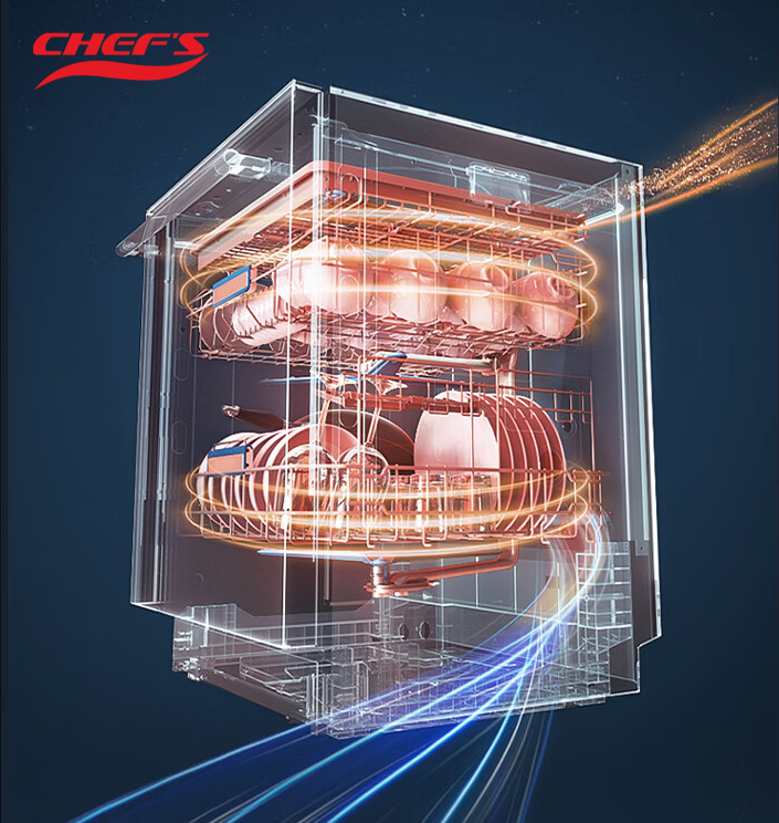 Máy rửa bát Chefs được trang bị công nghệ sấy khí nóng PTC, đây là công nghệ sấy mới giúp bát đĩa khô tuyệt đối so với các công nghệ sấy bằng nước nóng ở các dòng máy rửa bát thế hệ trước của hãng. Hệ thống sấy tăng cường Hot air drying giúp sấy khô hoàn hảo chén bát.