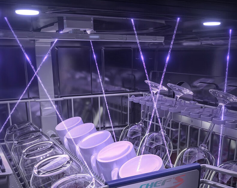 Máy rửa bát của hãng Chefs được trang bị tính năng giặt diệt khuẩn để có thể tiêu diệt vi khuẩn gây hại trên bát, đĩa và các vật dụng nội trợ khác. Công nghệ này được gọi là công nghệ diệt khuẩn bằng tia cực tím UV.