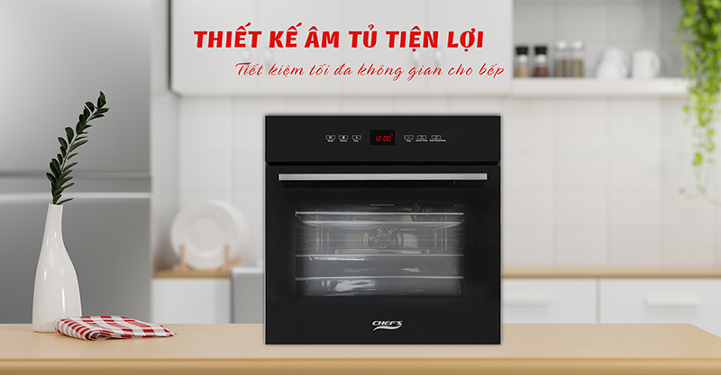 Lò nướng Chefs sở hữu thiết kế âm tủ sang trọng, hiện đại và trang nhã hài hòa với mọi không gian nội thất. Lò nướng còn có kiểu dáng gọn gàng, tiết kiệm diện tích sử dụng, thích hợp với nhiều không gian nhà bếp.