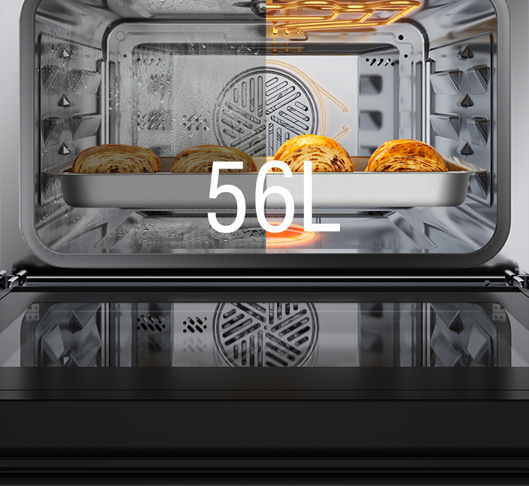 Phần khoang lò được thiết kế với dung tích lên đến 56 lit với 2 ngăn nướng và được trang bóng đèn chiếu sáng, giúp bạn thỏa sức chế biến các món nướng nhiều nhất cho gia đình. Bạn có thế nướng nguyên một con gà hay vịt mà không cần phải chặt nhỏ ra như các mẫu lò nướng nhỏ.