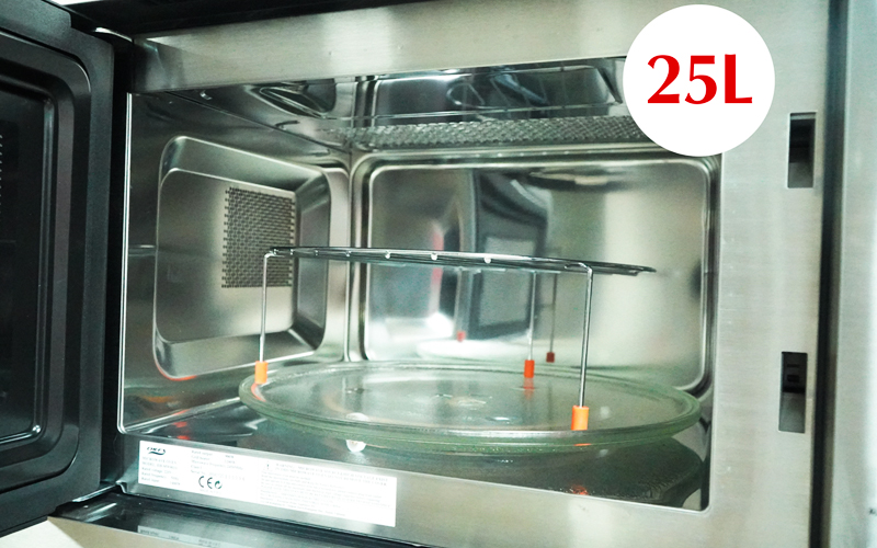 Dung tích lò lớn cũng chính là một trong những ưu điểm nổi bật tiếp theo khiến cho lò vi sóng Chefs EH MW801S được rất nhiều gia đình lựa chọn. Với dung tích 25L, đường kính đĩa quay 31.5cm, lò có thể phục vụ nhu cầu cho gia đình từ 4-6 người với các chức năng vi sóng và nướng.