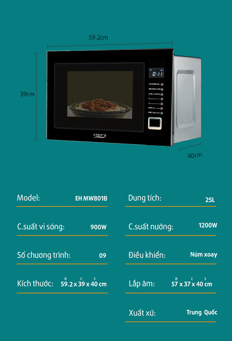 Lò vi sóng CHEF’S EH-MW801B màu đen sang trọng, kết hợp cả tính năng nướng, là sự lựa chọn yêu thích của nhiều khách hàng hiện nay.