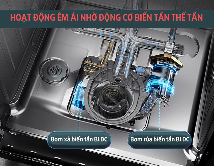 Là thế hệ sản phẩm mới nên thật dễ hiểu khi máy rửa bát Chefs EH DW401E được trang bị hệ thống động cơ biến tần thế hệ mới. (thường được sử dụng trên các dòng máy rửa bát cao cấp như Bosch, Miele, Siemens...).