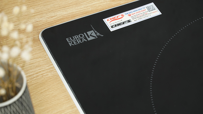 Bếp được trang bị mặt kính EuroKera (nhập khẩu Pháp) màu đen, nguyên khối, được vát cạnh và bo viền nhôm 4 cạnh của bếp, giúp bảo vệ mặt kính tối đa trước những va chạm có thể gây nứt vỡ mặt kính. Mặt kính Euro Kera còn có độ chịu nhiệt cao - 1000°C, sốc nhiệt đến 800°C, bề mặt phẳng, mịn dễ dàng vệ sinh, chùi rửa.