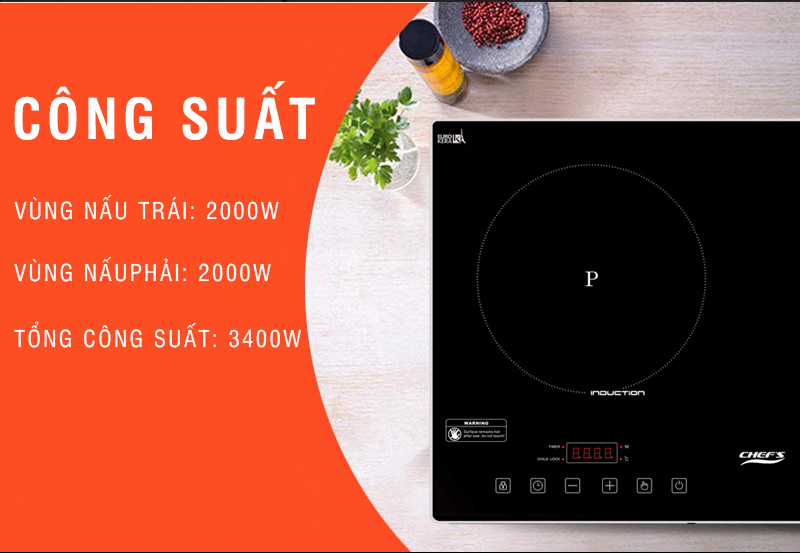 Bếp từ Chefs EH DIH321 sở hữu 2 vùng nấu có công suất đun nấu 2000w ở mỗi vùng. Nhưng khi sử dụng đồng thời cùng một lúc cả 2 vùng nấu thì bếp chỉ đạt được max3400W nếu một bên bếp tăng công suất nấu, bên còn lại sẽ tự động giảm mức công suất xuống để đảm bảo bếp hoạt động ở mức công suất tối đa, giúp bảo vệ và tăng tuổi thọ cho bếp.