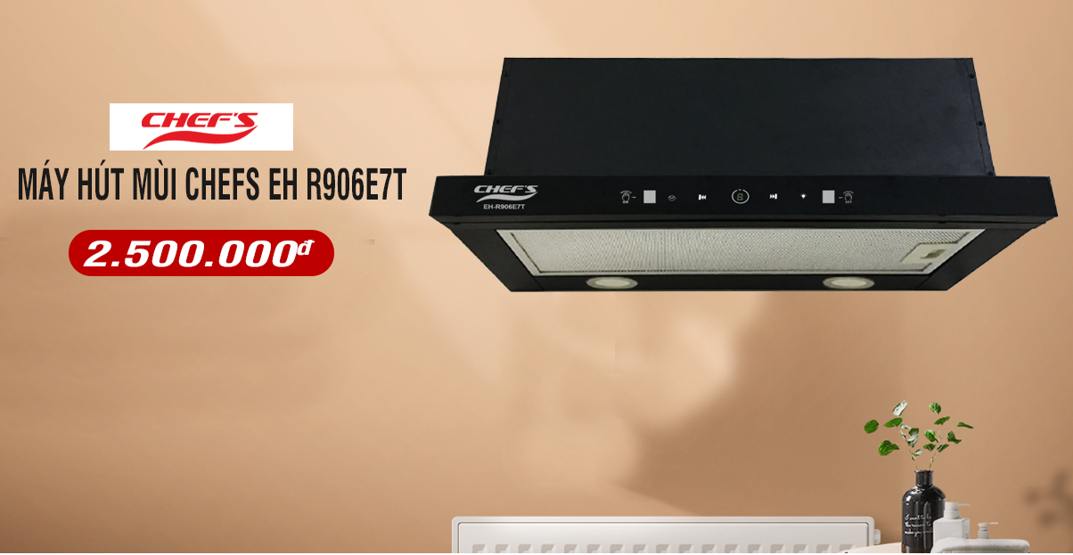 Hiện tại model máy hút mùi Chefs EH R906E7T đang được khuyến mãi với mức giá chỉ 3.000.000 đồng kèm quà tặng và ưu đãi siêu hấp dẫn khác tại showroom ủy quyền chính hãng beptuchefs.net (số 39 đường Láng- Đống Đa - Hà Nội).