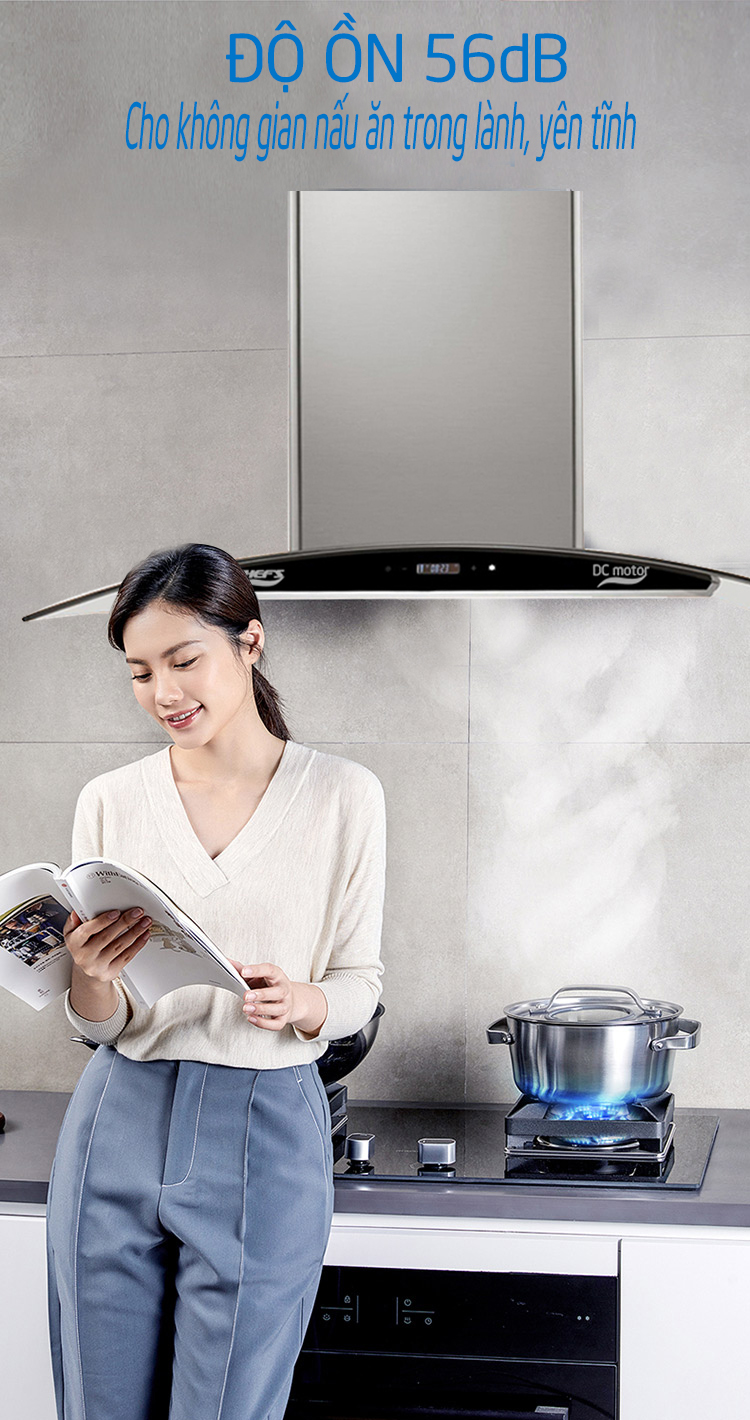 Do trang bị loại động cơ mới và công nghệ cách âm đạt tiêu chuẩn cao cấp của châu âu mà máy hút mùi Chefs EH R501E7DC tạo ra tiếng ồn rất nhỏ trong quá trình hoạt động, độ ồn lớn nhất chỉ ở mức dưới 56dB cho một không gian bếp trong lành, sạch mùi dầu mỡ và đặc biệt rất yên tĩnh tạo ra cảm giác thoải mái nhất cho các bà nội trợ.