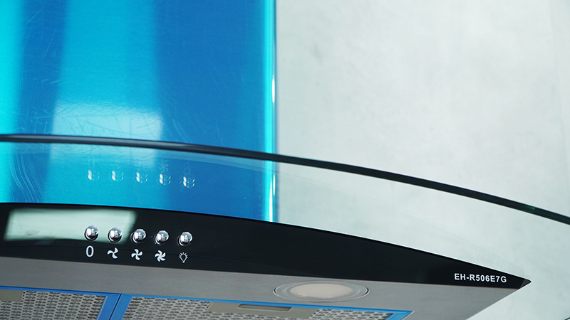 Phần kính cong của máy hút mùi Chefs EH R506E7G phiên bản 2023 được làm trong suốt toàn bộ thay vì kính đen và chỉ làm trong suốt từ mặt điều khiển của máy đến hết chiều rộng kính. Điều này khiên máy trông hấp dẫn và sang trọng hơn so với phiển bản trước.