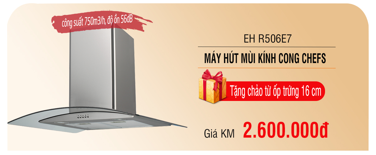 Máy hút mùi Chefs EH R506E7 là model hút mùi kiểu dáng kính cong có mức giá rẻ nhất hiện nay của hãng Chefs và đây cũng mẫu máy bán chạy nhất trong 2 năm liên tiếp 2018 và 2019. Đặc biệt công suất hút và độ của máy luôn làm hài lòng những khách hàng khó tính bậc nhất.