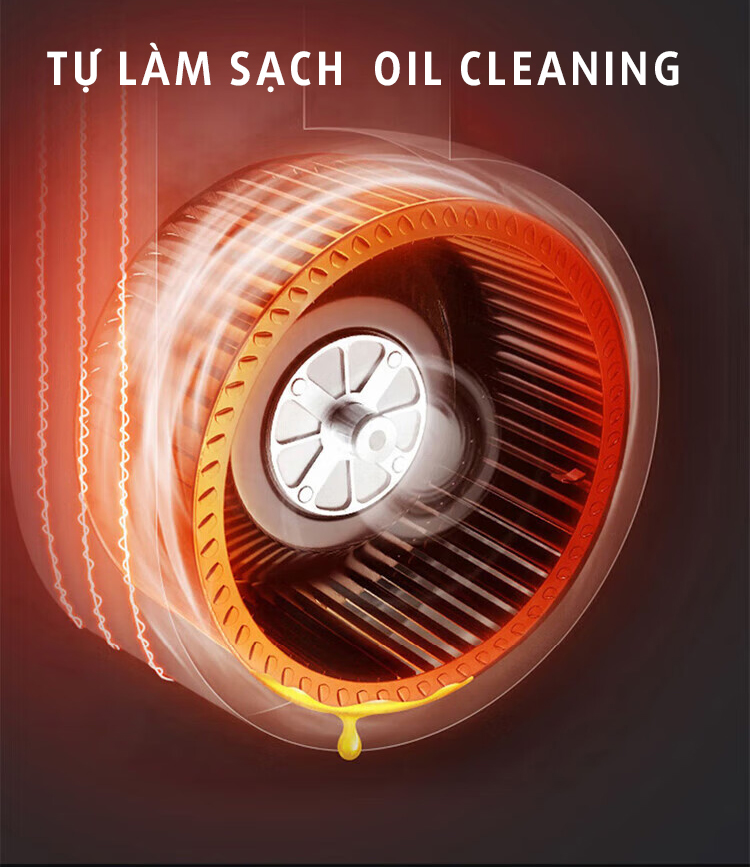 Một điểm đặc biệt mà bạn không thể tìm thấy trên bất kì một mẫu hút mùi nào trừ chiếc máy hút mùi kính vát Chefs EH R706E7D đó chính là tính năng tự lại sạch oil cleaning. Cơ chế hoạt động là lồng quạt của máy sẽ được gia tăng nhiệt đô để tự loại bỏ dầu mỡ bám vào các cánh quạt, qua đó sẽ làm tự làm sạch được dầu mỡ là bạn không cần phải bảo dưỡng lồng quạt như những mẫu hút mùi thông thường.