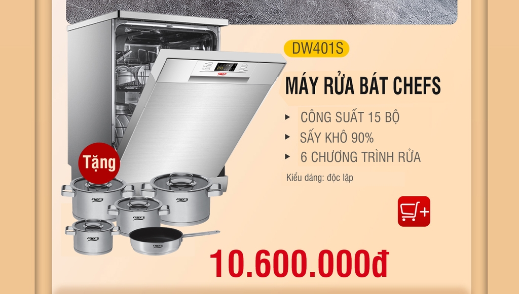 Xem thêm: Máy rửa bát Chefs giá chỉ hơn 10 triệu, dùng có tốt không?