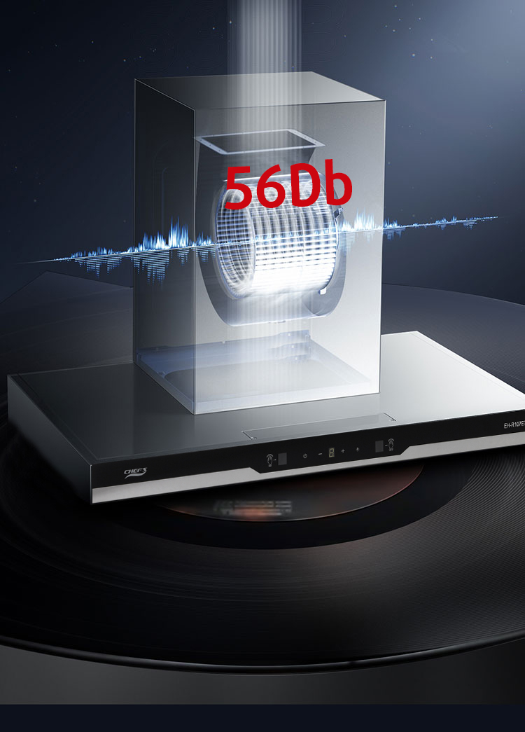 Máy hút mùi Chefs EH R107E7D có công suất hút lớn nhưng độ ồn tối đa chỉ max 56dB, không gây cảm giác khó chịu tiếng ồn khi sử dụng.