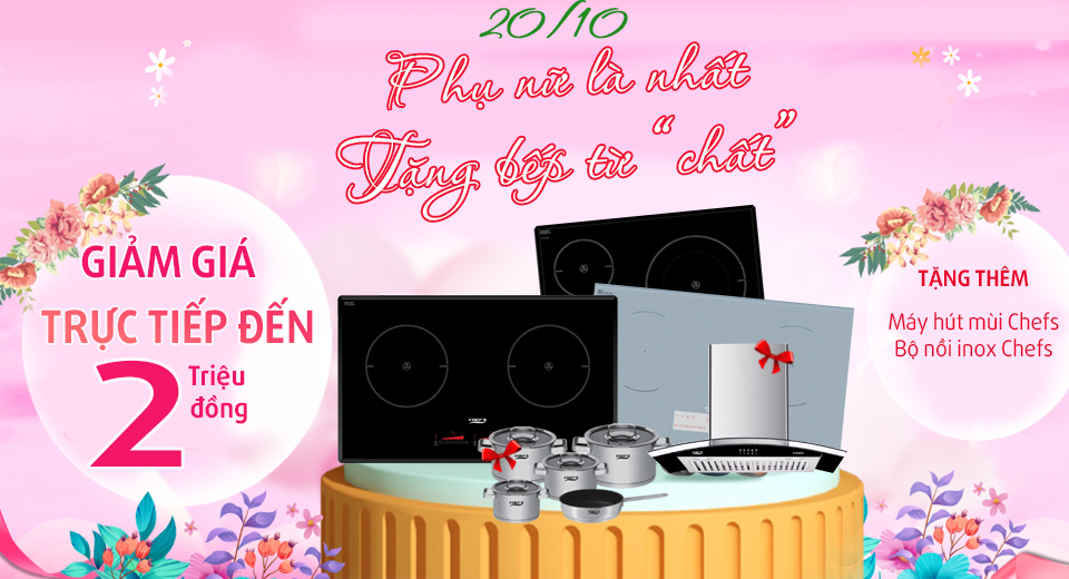 Cơ hội lớn để các đấng mày râu tặng cho một nửa yêu thương của mình một chiếc bếp từ cực chất, với chương trình khuyến mãi nhân ngày phụ nữ 20/10 do showroom ủy quyền chính hãng Chefs tại Việt Nam tổ chức. "Phụ nữ là nhất - tặng bếp cực chất" sale cực rẻ cho những mẫu bếp từ Chefs với giá không thể rẻ hơn kèm thêm nhiều ưu đãi hấp dẫn khác Đừn bỏ lỡ cơ hội này nhé các anh.