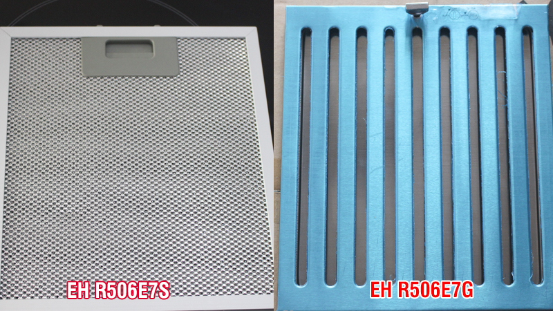 Cả 2 máy đều trang bị đèn chiếu sáng Led (2 x2.5w), máy hút mùi Chefs EH R506E7S sử dụng kiểu lưới lọc hợp kim nhôm 3 lớp truyền thống, lọc dầu hiệu quả và khối lượng nhẹ hơn, trong khi model máy hút mùi Chefs EH R506E7G lại được trang bị kiểu lưới lọc inox baffle hiện đại, khắc phục được hiện tượng dễ móp méo và dễ dàng khi vệ sinh bảo dưỡng.