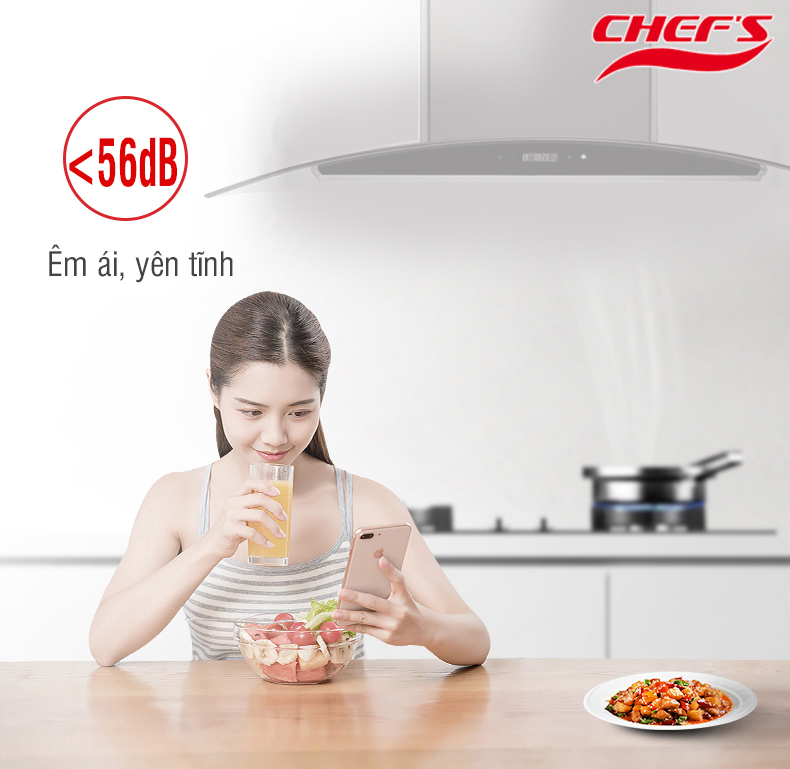 Do cùng dùng chung một loại động cơ nên máy hút mùi chefs EH R506E7S và R506E7G đều có mức độ tiếng ồn khá thấp <56Db, mang đến một không gian bếp yên tĩnh hơn rất nhiều so với nhiều loại hút mùi hiện có trên thị trường.