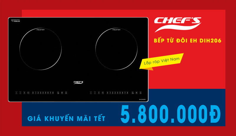 Lý do đầu tiên và chính yếu nhất để cho chiếc bếp từ Chefs EH DIH206 trở nên rất đáng mua, đó là mức giá rẻ rất dễ tiếp cận, chỉ 5.8 triệu đồng. So với mặt bằng chung của những mẫu bếp từ đôi thì mức giá của chiếc bếp Chefs này sẽ phù hợp với mức thu nhập của nhiều gia đình, bạn không cần phải đầu tư quá nhiều tài chính cả hơn chục triệu đồng cho một chiếc bếp từ để đun nấu hàng ngày.