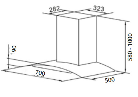 Kích thước máy hút mùi kính cong Chefs