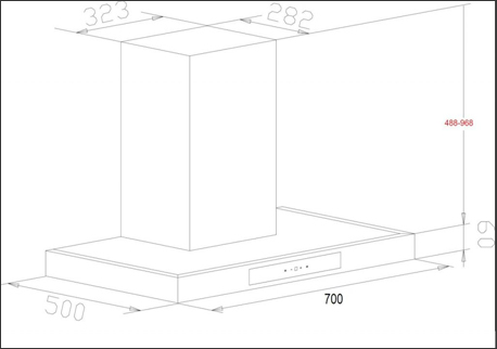 Kích thước máy hút mùi chữ T Chefs