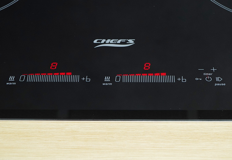 Nếu nói bếp từ Chefs EH DIH888 là một những chiếc bếp có giao dễ sử dụng nhất không hề sai một chút nào, sở hữu 2 bảng điều khiển riêng biệt với thanh trượt slide được thiết kế dạng vạch chia rất trực quan để người sử dụng thao tác. Trên mỗi thanh trượt điều khiển lại có hệ thống led hiển thị mức công suất cực kỳ sắc nét và dễ nhìn, và trên mỗi phím chức năng như giữ ấm, khóa bàn phím, tạm dừng, hẹn giờ đều có led hiển thị riêng.
