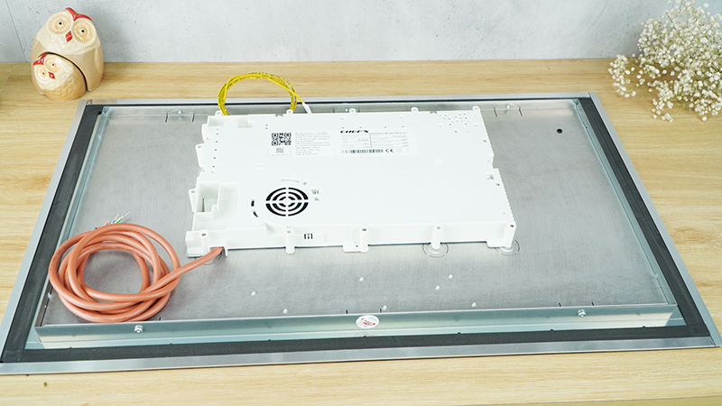 Phần bùng bếp được thiết kế rất gọn và nhỏ nhờ tối ưu hóa được các linh kiện và công nghệ, chứ không to và cồng kềnh như các mẫu bếp từ khác. Khung thép không gỉ chắc chắn khiến bếp cứng vững khi lắp đặt âm.