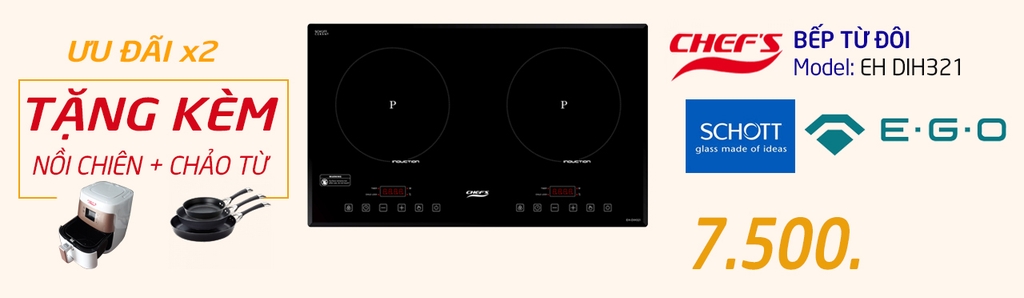Bếp từ Chefs EH DIH321 nổi tiếng với giá thành rẻ, chất lượng tốt, các ưu điểm ngập rẫy, người ta chỉ cần nghe đến thôi là có thể biết được đây là mẫu bếp của Chefs trên thị trường nhiều năm nay. Không chỉ có vậy, với "tuổi đời" của mình, chiếc bếp này dễ dàng vượt qua những mẫu của các hãng khác với phân khúc tầm trung. Thông thường sản phẩm bán trên thị trường chỉ được giảm tiền mặt hoặc tặng quà nhưng trong tháng 10 này, nếu khách hàng mua bếp từ Chefs DIH 321 trực tiếp tại Showroom Uỷ Quyền Chefs sẽ vừa được giảm giá, lại vừa kèm quà tặng, mà quà tặng không chỉ có 1, ưu đãi x2 lần thông thường. Nếu bạn đang tò mò không biết chương trình x2 lần này là gì thì đừng quên ghé 39 đường Láng, Đống Đa, Hà Nội để trải nghiệm trực tiếp sản phẩm cùng các ưu đãi khác nhé.